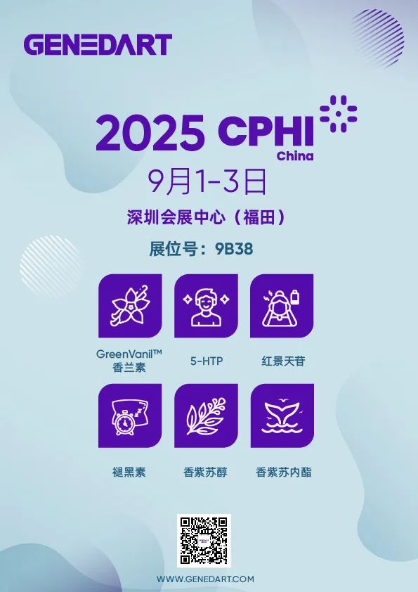 GENEDART sincerely invites you to visit our booth 9B38, where we will showcase star products including natural vanillin, salidroside, 5-HTP, and more. Join us in exploring the boundless possibilities of natural ingredients and co-creating a safe, healthy, and sustainable future together!
